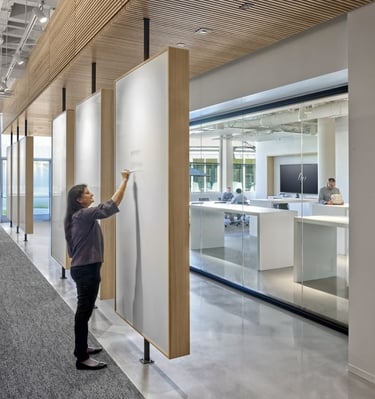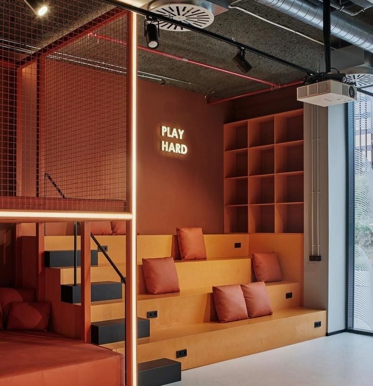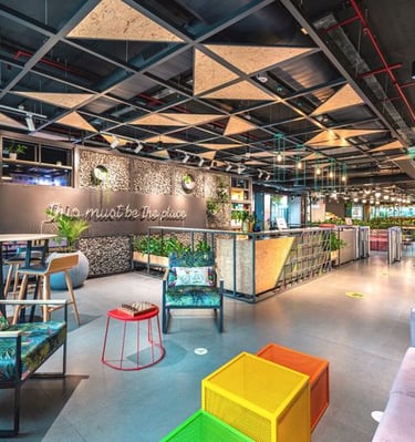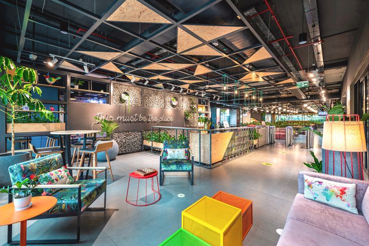 Espaços flexíveis e modulares para trabalho colaborativo e networking entre empreendedores e profissionais.